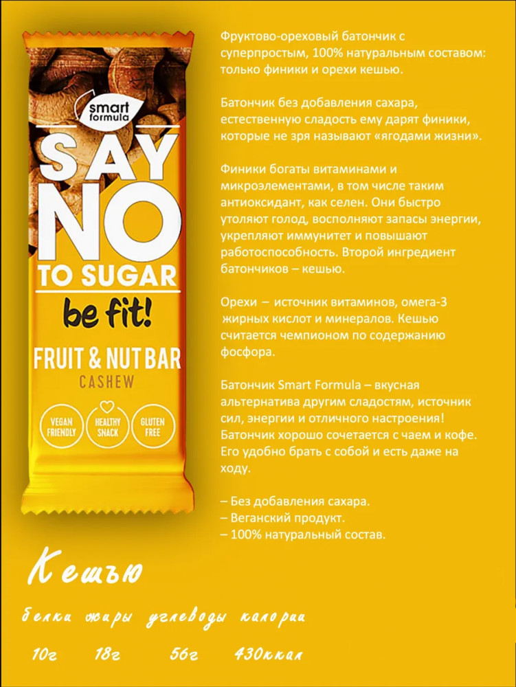 Отзывы «Батончик фруктово-ореховый с кешью «Smart Formula»»