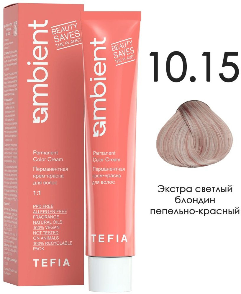 Tefia Крем-краска для волос, оттенок 10.15 Экстра светлый блондин пепельно-красный
