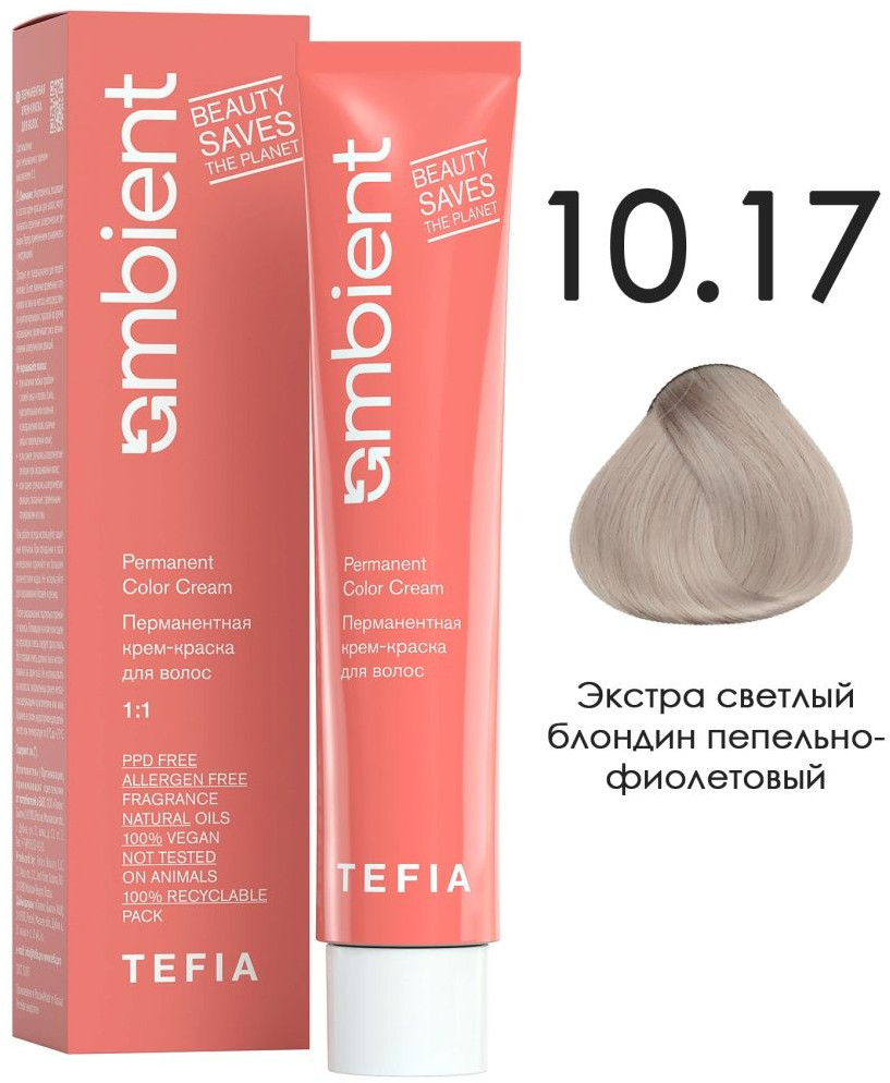 Tefia Крем-краска для волос, оттенок 10.17 Экстра светлый блондин пепельно-фиолетовый