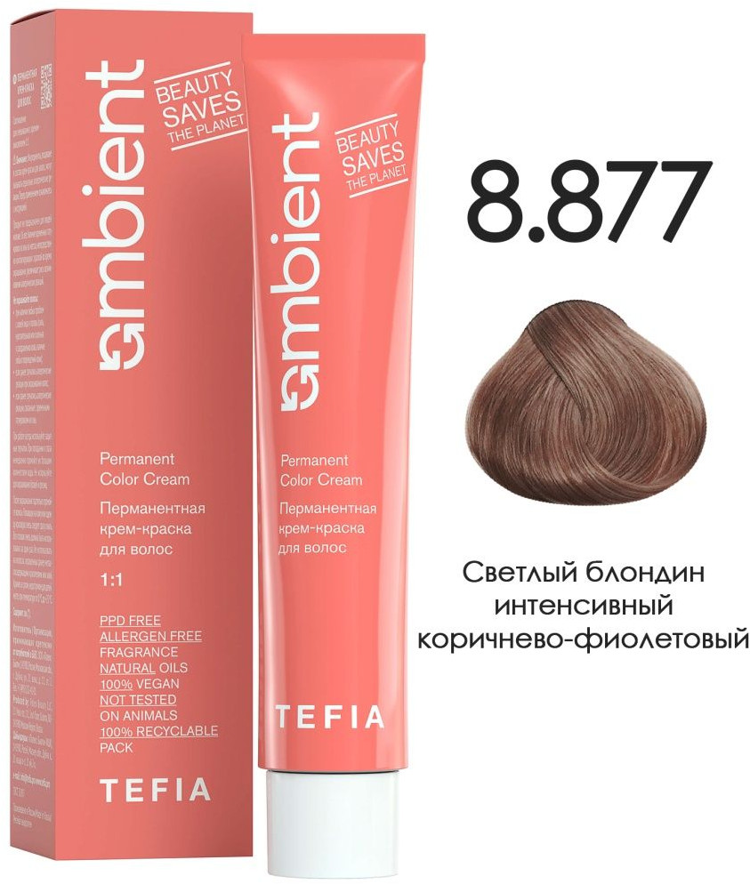 Tefia Крем-краска для волос, оттенок 8.877 Светлый блондин интенсивный коричнево-фиолетовый