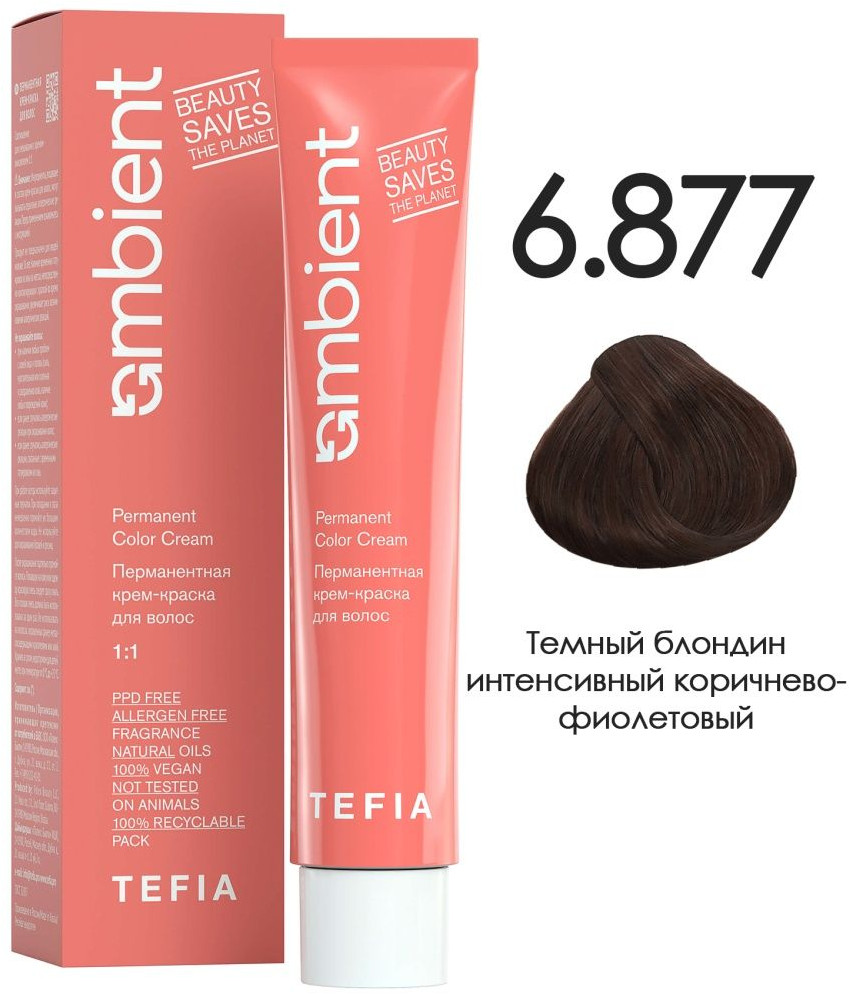 Tefia Крем-краска для волос, оттенок 6.877 Тёмный блондин интенсивный коричнево-фиолетовый