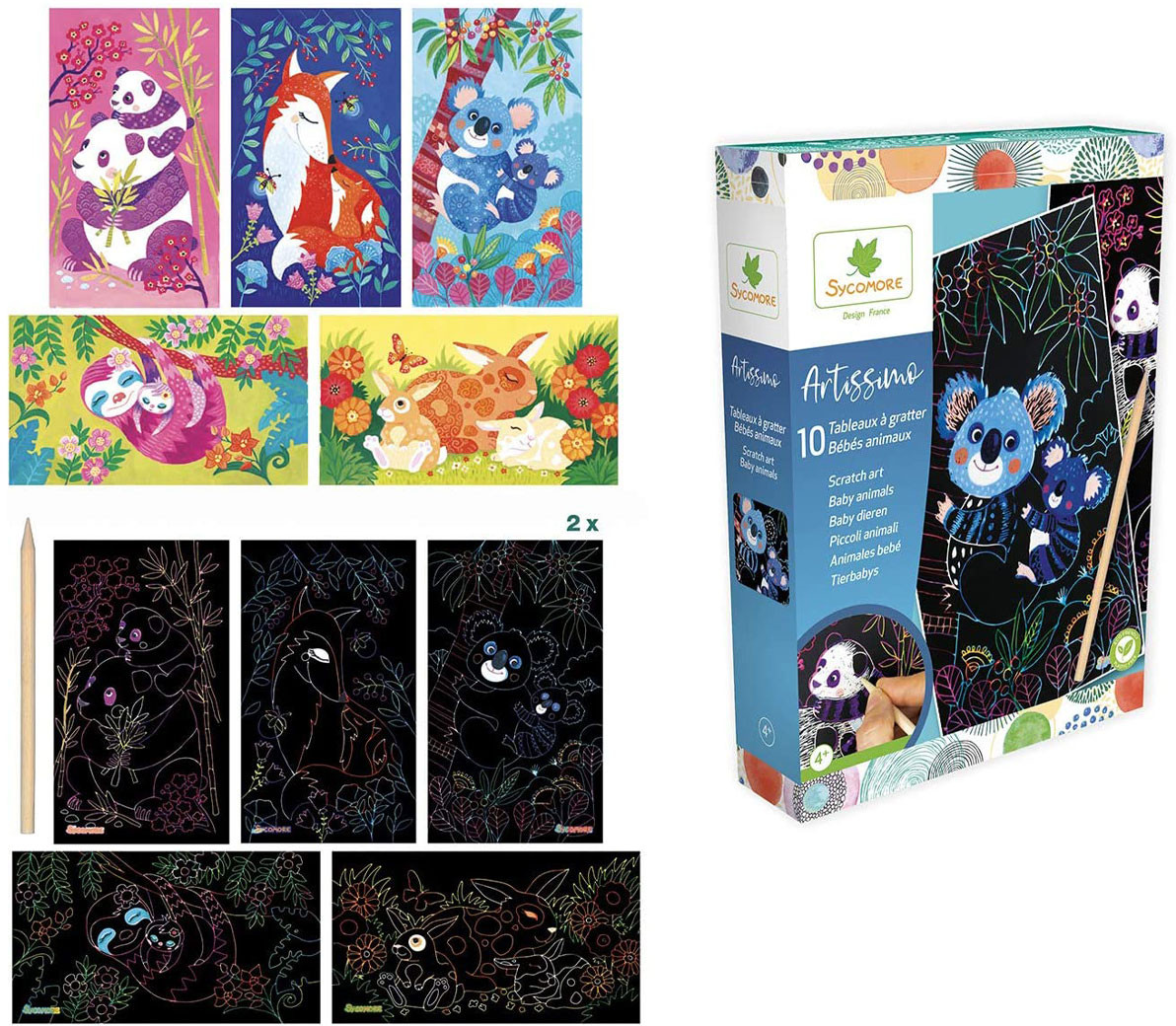 💳 Оплатить за товар можно при получении 🇰🇿 Есть бесплатная доставка по Казахстану от 1 дня 🎁 Копите бонусы с каждой покупки Набор для скретчинга Sycomore Artissimo «Животные с малышами» — это красочные полотна с изображением милых мам животных со своими малышами. Скретч-арт: с помощью деревянного стилуса ребенок царапает (счищает) темный слой гравюры, и постепенно начинает проявлять узоры и изображения под ним. Можно придумать свои собственные формы и мотивы и «открывать» те части картинки, которые захочется. Некоторые части картины не царапаются, благодаря чему картина остается гармоничной. Понятные инструкции в картинках помогут шаг за шагом освоить технику скретчинга. Миссия французского бренда Sycomore: Создание качественных наборов для творчества, чтобы дети могли разделить с родители радостные моменты, проведенные вместе. Sycomore помогает сократить время перед экраном гаджетов, и увеличить время, проводимое с семьей. Ассортимент включает разнообразные наборы для творчества. Они стимулируют воображения ребенка и дают большой простор для создания сюжетно-ролевых игр. |
