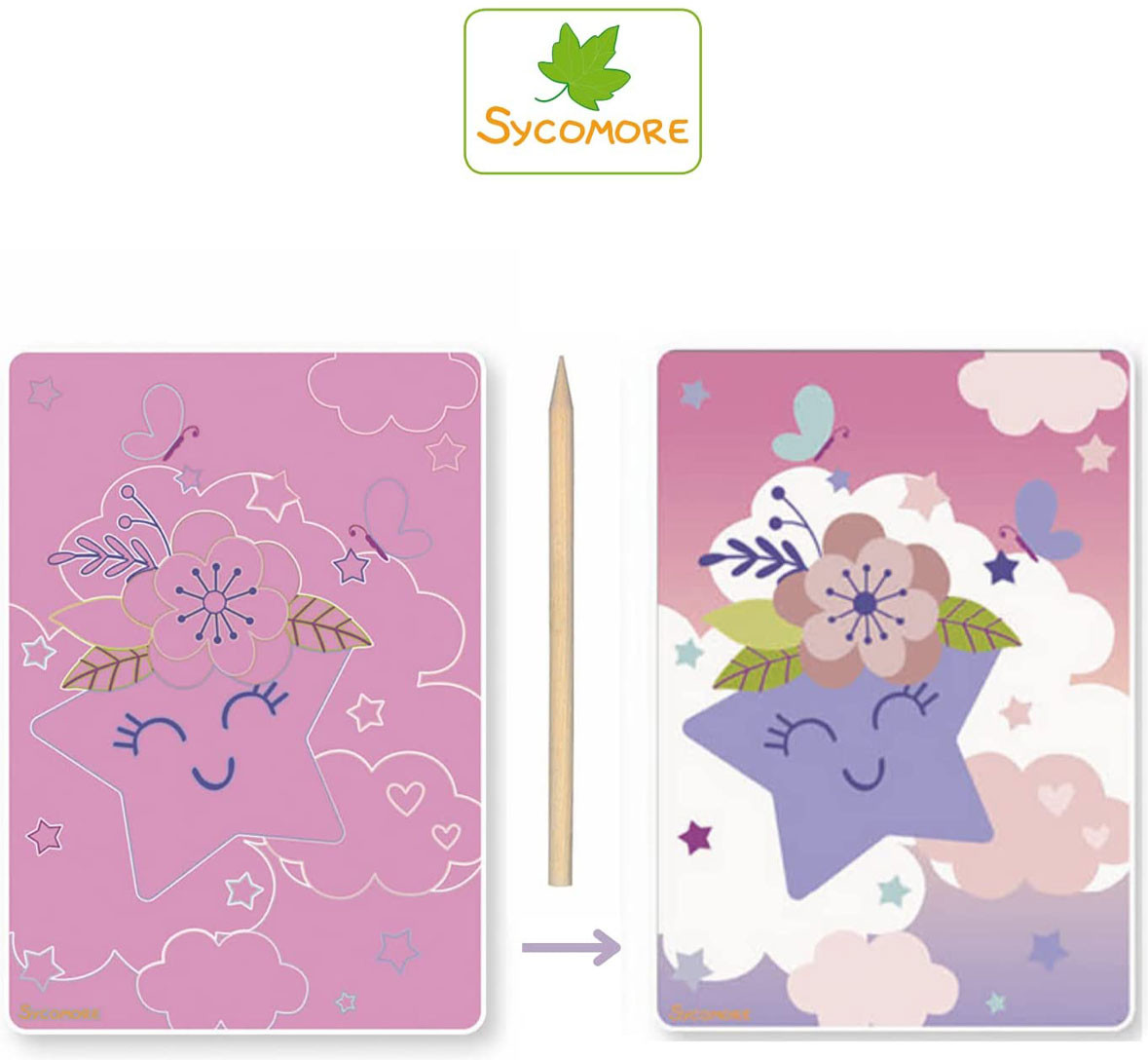 💳 Оплатить за товар можно при получении 🇰🇿 Есть бесплатная доставка по Казахстану от 1 дня 🎁 Копите бонусы с каждой покупки Набор для скретчинга Sycomore Artissimo «Волшебство» — это красочные полотна на тему звёздного ночного неба. Картины выполнены в розовых, сиреневых, фиолетовых и серебристых оттенках. Картины прекрасно впишутся в интерьер детской комнаты, создав волшебную атмосферу. Скретч-арт: с помощью деревянного стилуса ребенок царапает (счищает) темный слой гравюры, и постепенно начинает проявлять узоры и изображения под ним. Можно придумать свои собственные формы и мотивы и «открывать» те части картинки, которые захочется. Некоторые части картины не царапаются, благодаря чему картина остается гармоничной. Понятные инструкции в картинках помогут шаг за шагом освоить технику скретчинга. Миссия французского бренда Sycomore: Создание качественных наборов для творчества, чтобы дети могли разделить с родители радостные моменты, проведенные вместе. Sycomore помогает сократить время перед экраном гаджетов, и увеличить время, проводимое с семьей. Ассортимент включает разнообразные наборы для творчества. Они стимулируют воображения ребенка и дают большой простор для создания сюжетно-ролевых игр. |