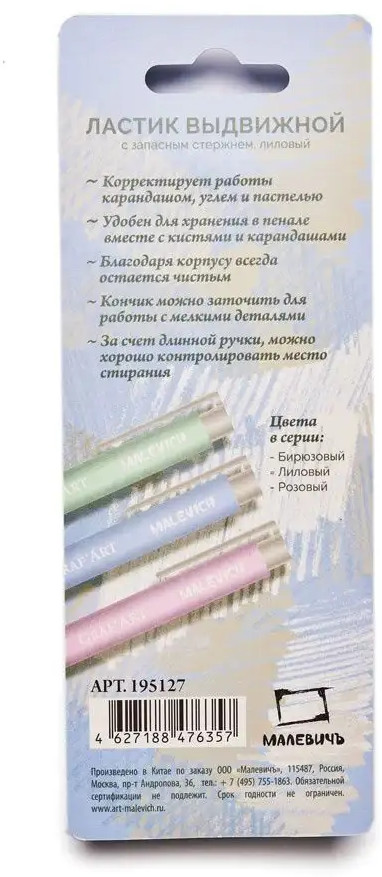 МалевичЪ Ластик выдвижной с запасным стержнем-20% +23 удобство хорошее стирание