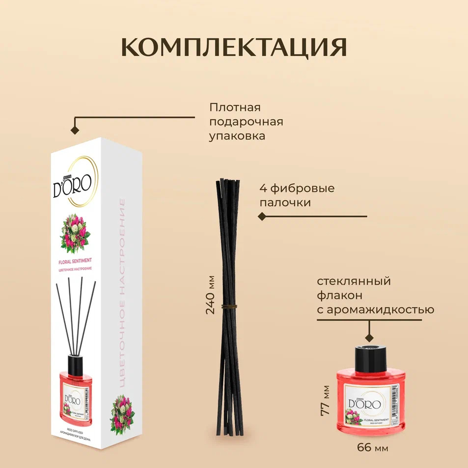 Gamma D’oro Аромадиффузор ароматический «Цветочное настроение»В данный момент этот товар отсутствует в продаже. Возможно, у нас найдется аналогичный или похожий товар здесь. Аромадиффузор наполнит ваш дом головокружительным свежим цветочным ароматом. Будьте готовы к романтике этого аромата. Вы ощутите полную легкость и свободу, словно во время прогулки в цветущих цветочных садах. |