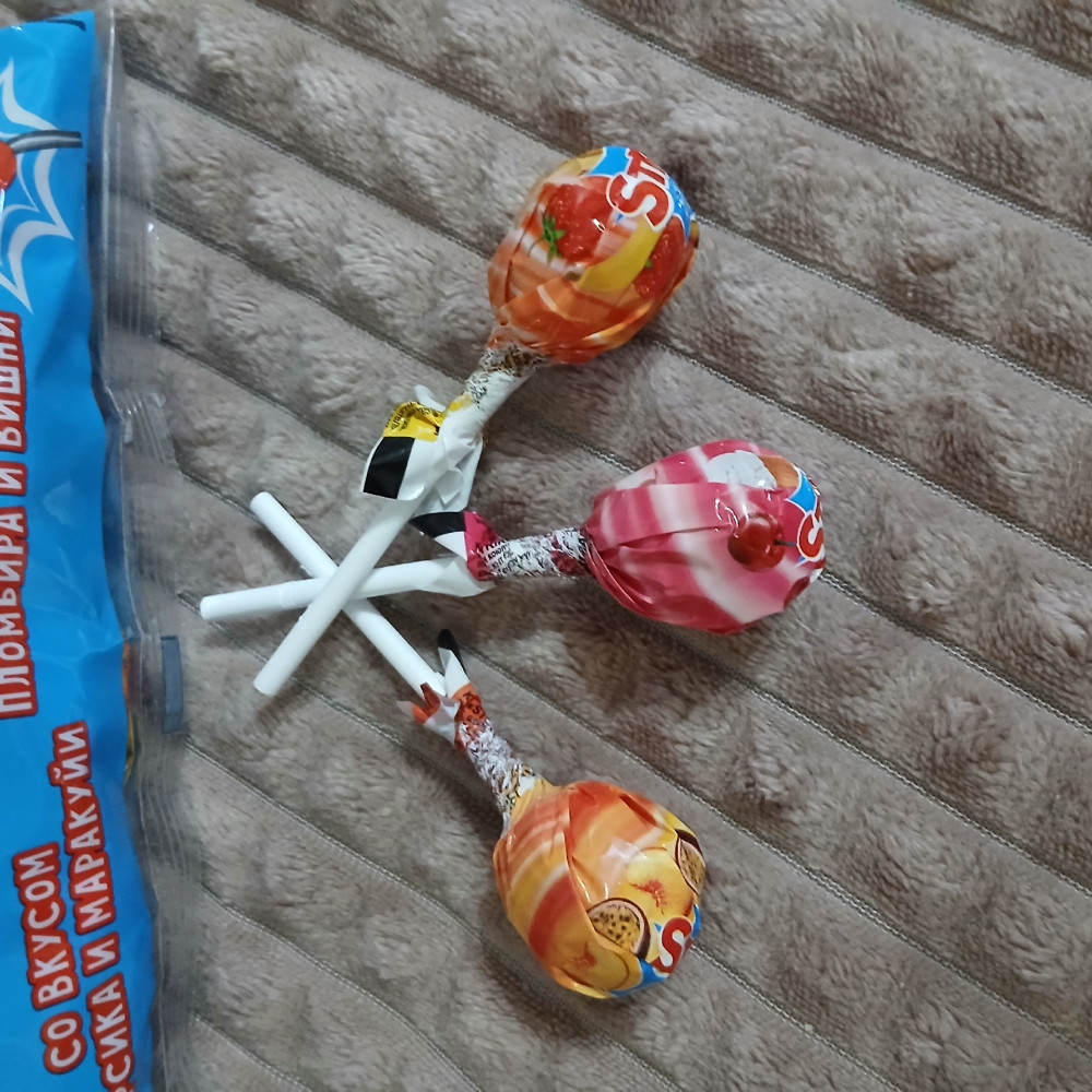 Вкуснейшие леденцы, пачка за неделю улетела, не заметили как! Понравились всей семье, будем еще заказывать. Персик/маракуйя чуть с кислинкой, клубнично-банановые мои любимые теперь, как и вишня/пломбир.