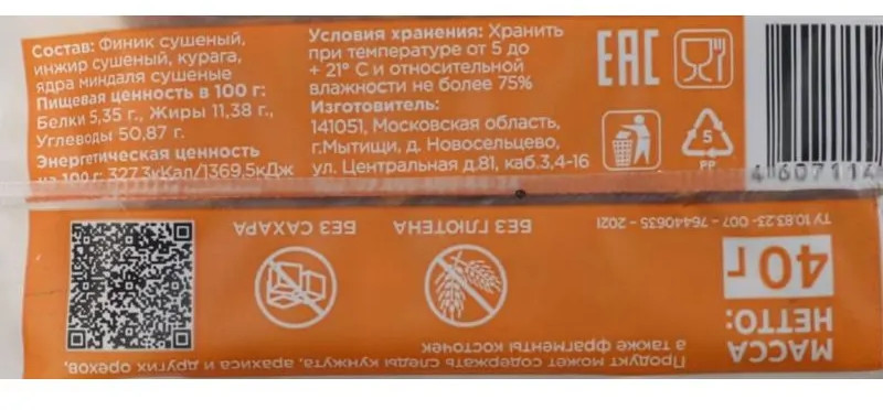 Фруктово-ореховый батончик с суперпростым, 100% натуральным составом. Батончик без добавления сахара, естественную сладость ему дарят финики, которые не зря называют «ягодами жизни». Финики богаты витаминами и микроэлементами, в том числе таким антиоксидант, как селен. Они быстро утоляют голод, восполняют запасы энергии, укрепляют иммунитет и повышают работоспособность. Второй ингредиент батончиков — орехи — тоже являются природными источниками ценных веществ: витаминов, минералов и омега-3 жирных кислот. Батончик хорошо сочетается с чаем и кофе. Его удобно брать с собой и есть даже на ходу.