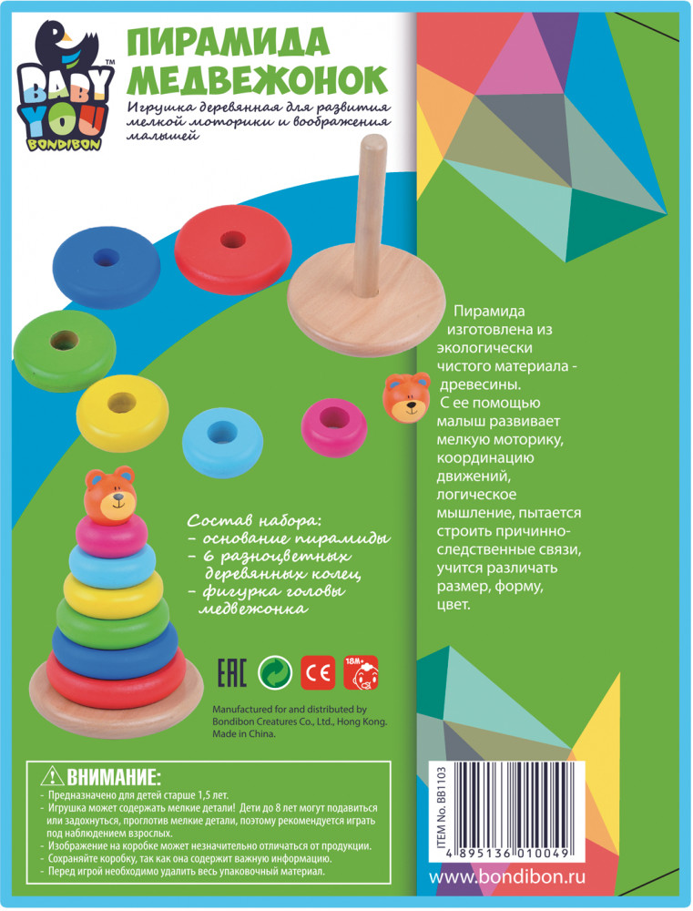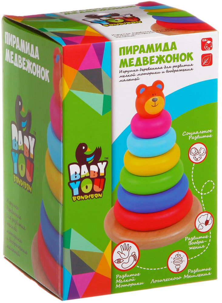 Bondibon Пирамида «Медвежонок»В данный момент этот товар отсутствует в продаже. Возможно, у нас найдется аналогичный или похожий товар здесь. Серия: Baby You С пирамидкой в виде конуса малыш получит представление о размере и цвете и освоит умение нанизывать колечки на стержень, располагая их по принципу увеличения или уменьшения размера. Деревянные развивающие игрушки, детали которых сделаны из различных пород дерева: клена, можжевельника, березы. Пирамидка — это не просто яркий предмет, способный надолго увлечь ребенка, но и его первый учитель, рассказывающий о мире на интуитивно понятном крохе языке. |