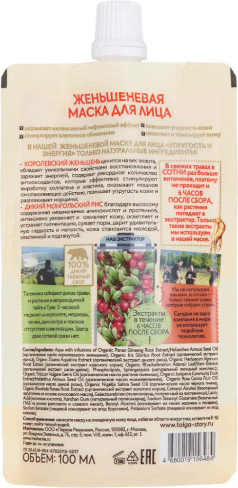 Рецепты Бабушки Агафьи Маска для лица «Упругость и энергия»