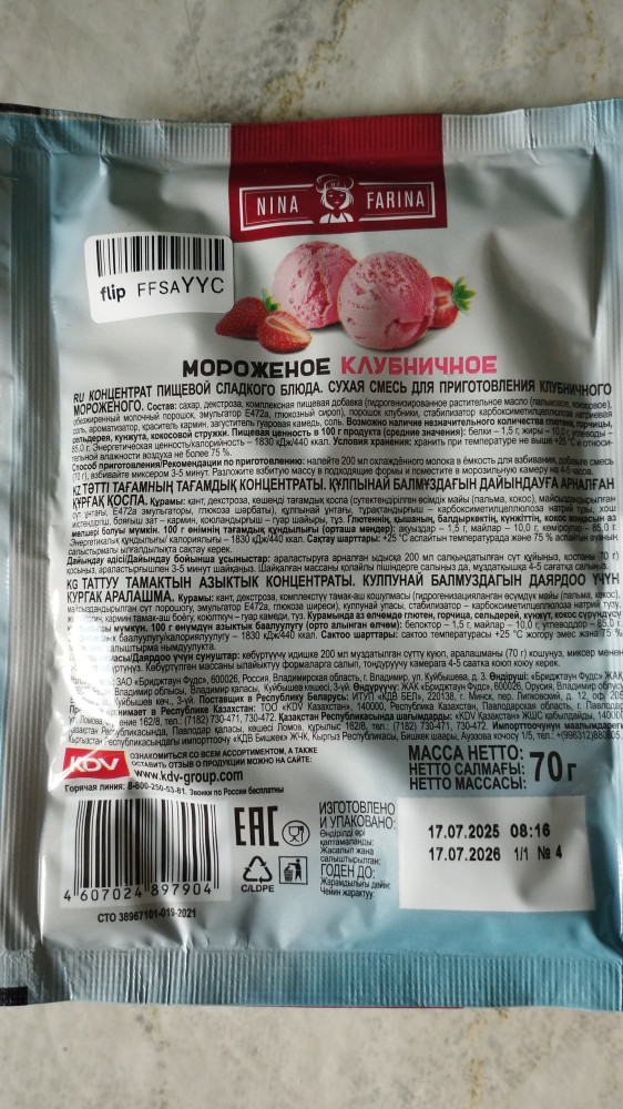 Мороженое очень понравилось, быстро , вкусно получилось на 200 мл молока одна пачка выходит 8 наших домашних формочек мороженого , девочки берите пробуйте .