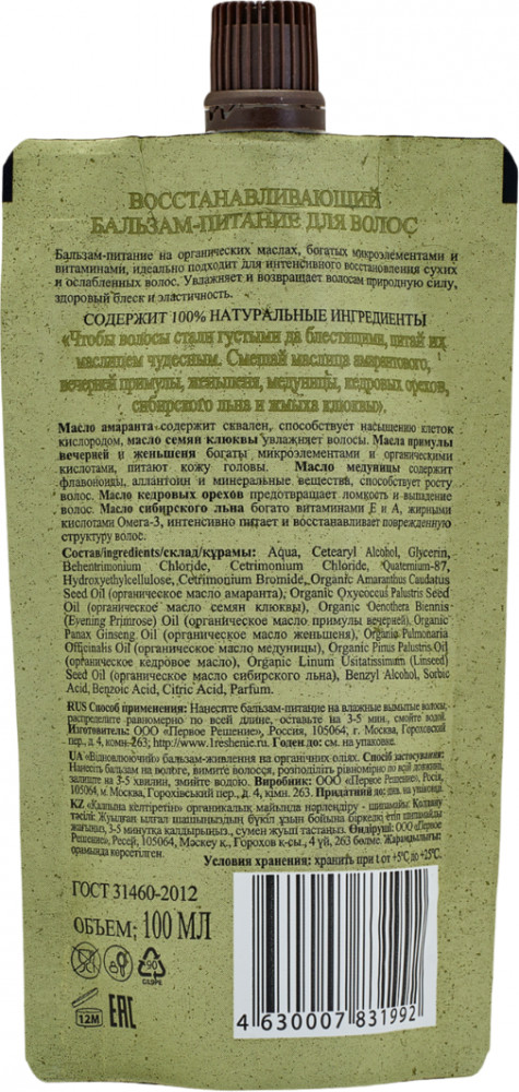 Рецепты Бабушки Агафьи Бальзам-питание для волос «Восстанавливающий»В данный момент этот товар отсутствует в продаже. Возможно, у нас найдется аналогичный или похожий товар здесь. Серия: Банька Агафьи Бальзам-питание на органических маслах, богатых микроэлементами и витаминами, идеально подходит для интенсивного восстановления сухих и ослабленных волос. Увлажняет и возвращает волосам природную силу, здоровый блеск и эластичность. Масло амаранта содержит сквален, способствует насыщению клеток кислородом, масло семян клюквы увлажняет волосы. Масла примулы вечерней и женьшеня богаты микроэлементами и органическими кислотами, питают кожу головы. Масло медуницы содержит флавоноиды, аллантоин и минеральные вещества, способствует росту волос. Масло кедровых орехов предотвращает ломкость и выпадение волос. Масло сибирского льна богато витаминами Е и А, жирными кислотами Омега-3, интенсивно питает и восстанавливает поврежденную структуру волос. |