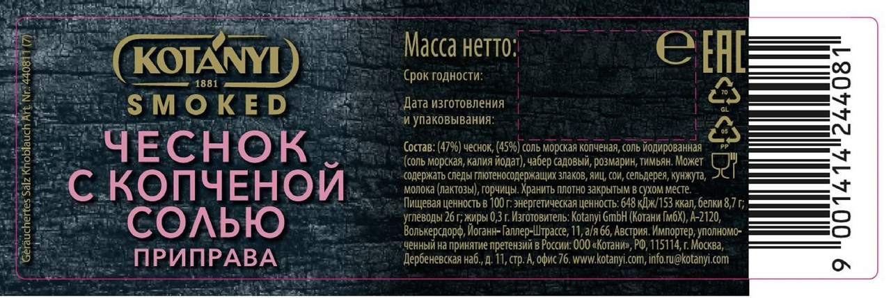 Kotanyi Приправа «Чеснок с копченой солью»