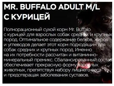 Mr.Buffalo Корм для взрослых собак средних и крупных пород с курицей