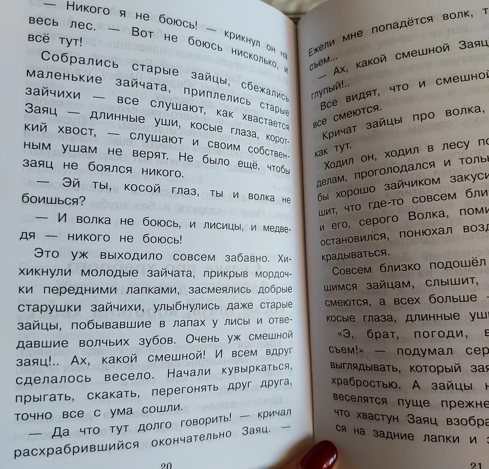 Купила для мамы. Это её первая сказка, по которой она научилась читать. Её любимая книжка детства. В содержании представлены ещё несколько интересных сказок и рассказов. Всем рекомендую. Спасибо, Flip.kz