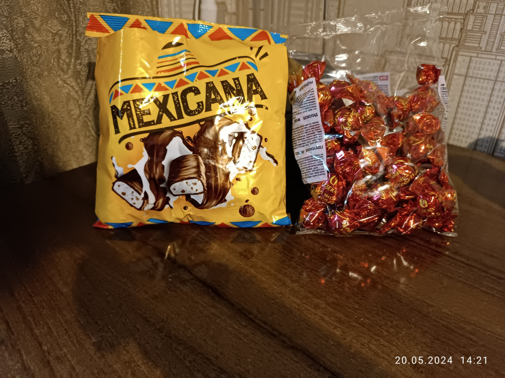 Конфеты Mexicana очень хорошие. Внутри находится светлая мягкая начинка с мелкими шоколадными кусочками. Мне очень понравилось.