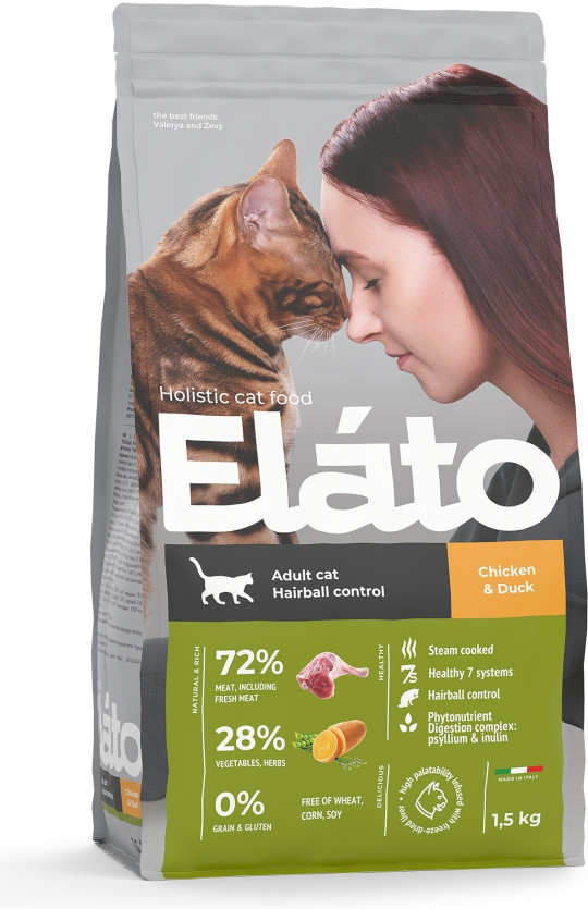 Elato Сухой корм для взрослых кошек с курицей и уткой, для выведения шерсти