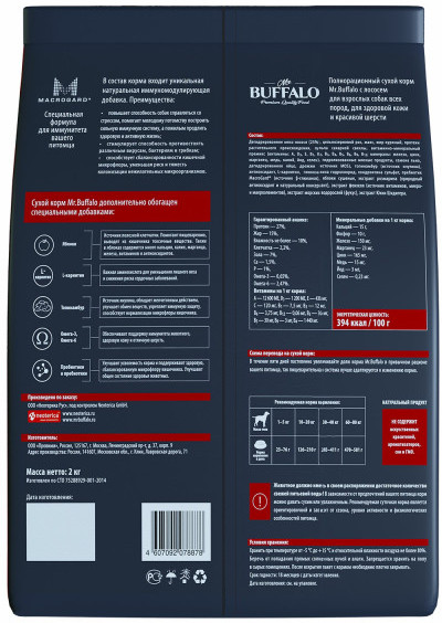 Mr.Buffalo Корм для взрослых собак средних и крупных пород с лососем