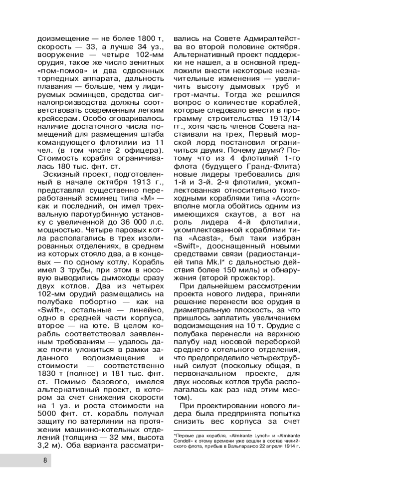 Британские лидеры Первой мировой. Самые большие эсминцы Королевского флотаВ данный момент этот товар отсутствует в продаже. Возможно, у нас найдется аналогичный или похожий товар здесь. Серия: Война на море Накануне Первой мировой британцы создали новый подкласс торпедно-артиллерийских кораблей — «лидер». Еще в 1907 году в составе флота Его Величества появился первый «большой эсминец» (он же «бэбискаут») «Свифт», построенный по инициативе Первого морского лорда Джона «Джеки» Фишера. По мнению знаменитого «отца Дредноута», такие корабли должны были заменить эсминцы и легкие крейсера-скауты, взяв на себя решение широкого круга задач: действовать совместно с линейными эскадрами, не связывая их недостатком мореходности и скорости, вести ближнюю разведку, защищать главные силы от вражеских миноносцев и выводить свои миноносцы в торпедную атаку. К Ютландскому сражению 1916 года успели построить 10 лидеров. Если бы ночная радиограмма лидера «Фолкнор» об истинном положении кайзеровского флота дошла до командующего Гранд-Флита, то решающая битва закончилась бы не ничьей, а настоящим разгромом германцев (кроме того, в ходе боя «Фолкнор» со своей флотилией миноносцев потопил броненосец «Поммерн»). Уже во время войны были разработаны и построены лидеры серий «Шекспир» и «Скотт», которые отличались высокой скоростью и имели на вооружении пять 120-мм орудий. По своим характеристикам эти корабли стали лучшими лидерами Первой Мировой, оказав огромное влияние на развитие всего класса в целом. |