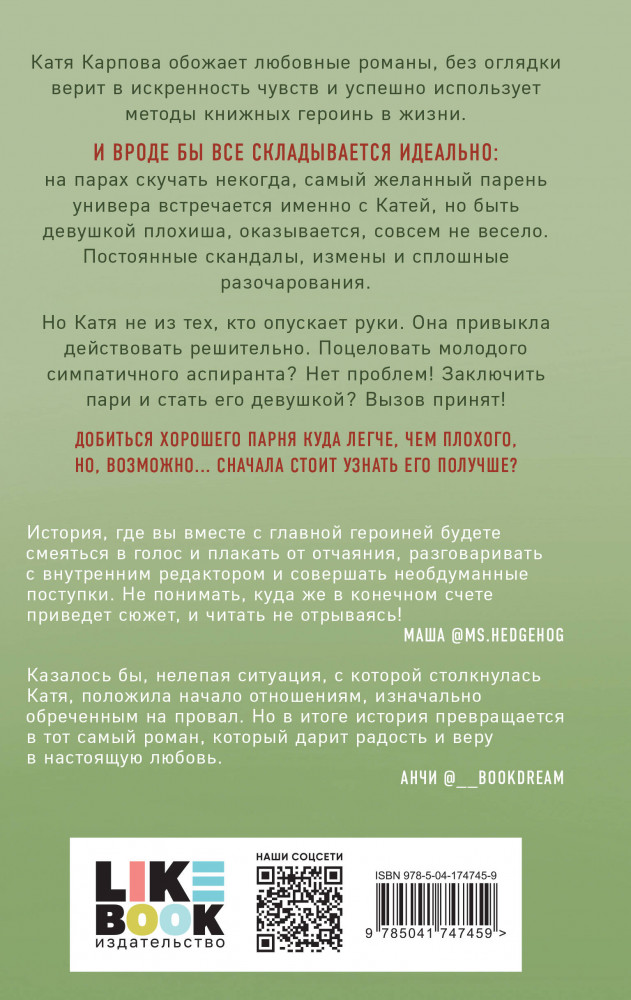 И вроде бы все складывается идеально: на парах скучать некогда, самый желанный парень универа встречается именно с Катей, но быть девушкой плохиша, оказывается, совсем не весело. Постоянные скандалы, измены и сплошные разочарования.