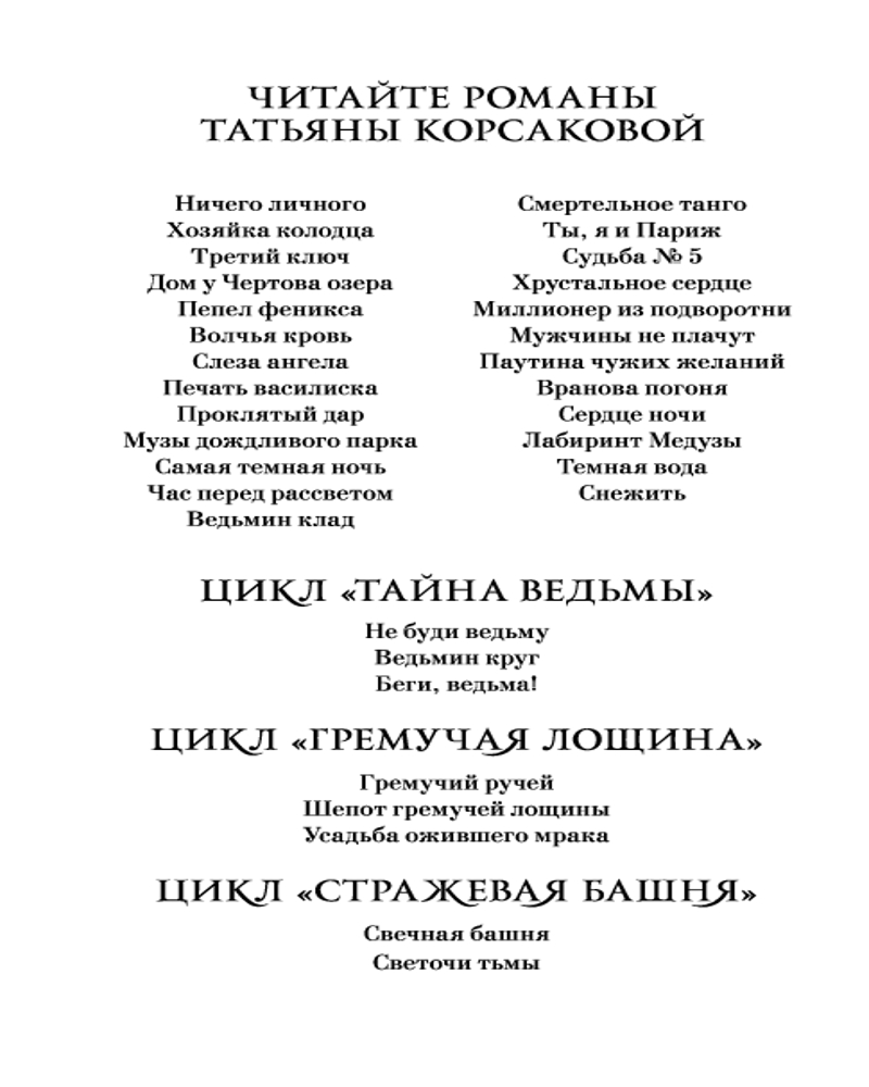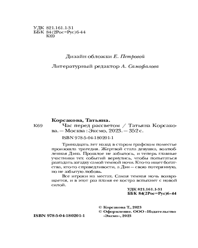 💳 Оплатить за товар можно при получении 🇰🇿 Есть бесплатная доставка по Казахстану от 1 дня 🎁 Копите бонусы с каждой покупки Серия: Татьяна Корсакова. Королева мистического романа. Новое оформление (обложка) Татьяна Корсакова пишет на границе смешения жанров сентиментального романа, детектива и мистики. Почитатели любовно-авантюрных историй знают ее под псевдонимом Алиса Корсак. В ее романах есть всё: настоящая дружба, первая любовь, мистика, нетривиальный сюжет. |