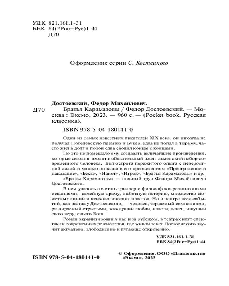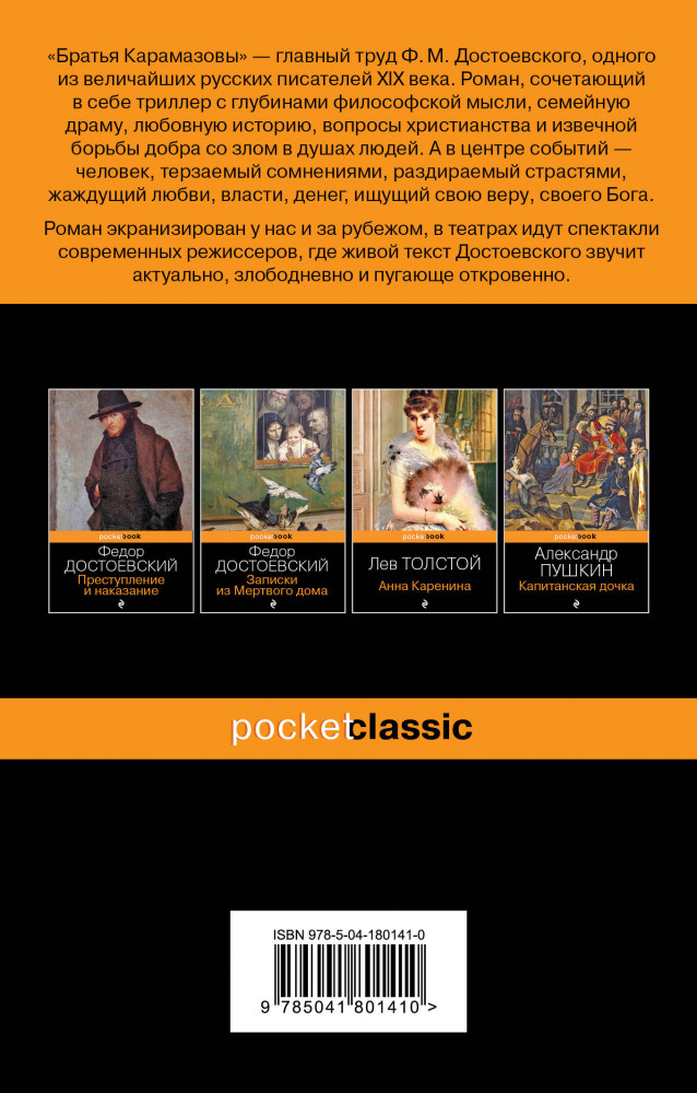 В данный момент этот товар отсутствует в продаже. Возможно, у нас найдется аналогичный или похожий товар здесь. Серия: Pocket book (обложка). Русская классика Знаменитое произведение русского классика, входящее в «великое пятикнижие Достоевского» и в «золотой фонд» мировой литературы.