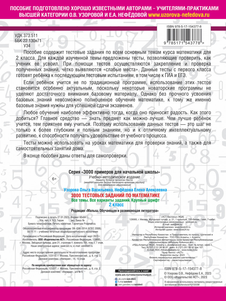 3000 тестовых заданий по математике. 2 класс. Крупный шрифт. Все темы и вариантыОльга Васильевна Узорова, Елена Алексеевна Нефедова +20