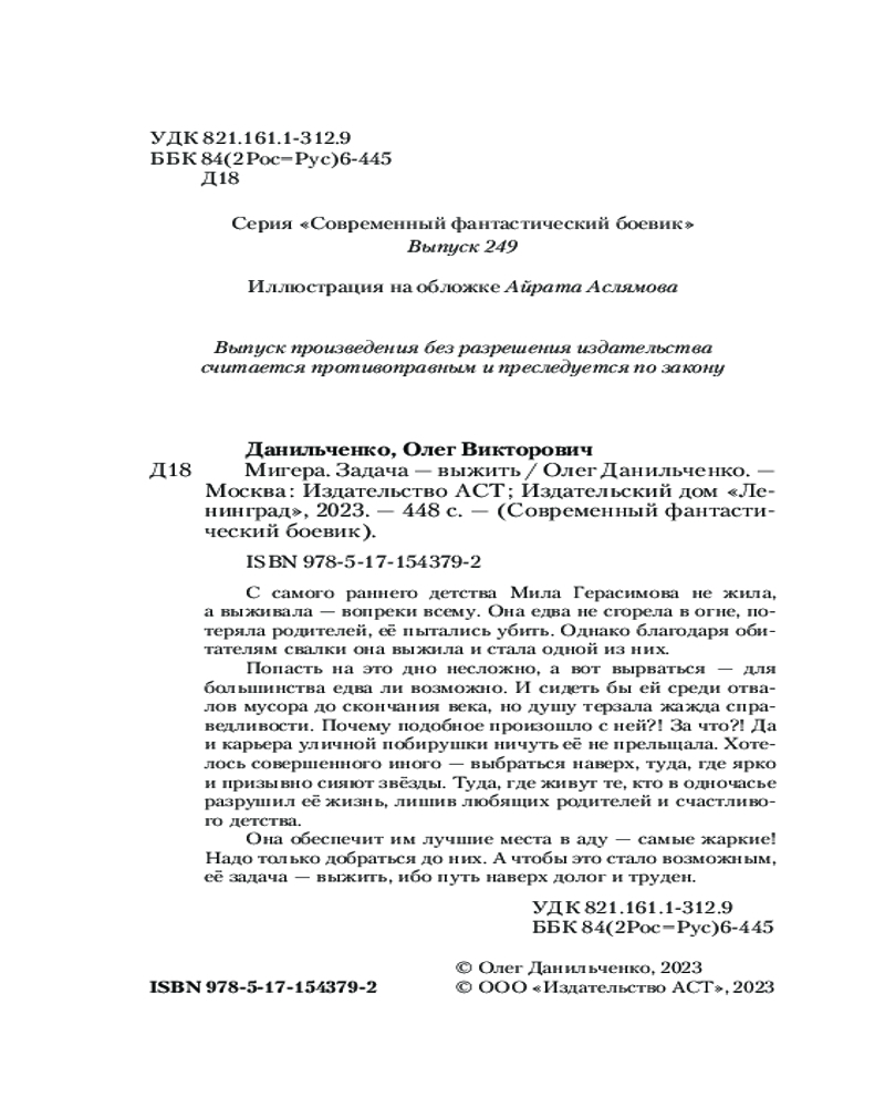 💳 Оплатить за товар можно при получении 🇰🇿 Есть бесплатная доставка по Казахстану от 1 дня 🎁 Копите бонусы с каждой покупки Серия: Современный фантастический боевик С самого раннего детства Мила Герасимова не жила, а выживала — вопреки всему. Она едва не сгорела в огне, потеряла родителей, её пытались убить. Однако благодаря обитателям свалки она выжила и стала одной из них. |