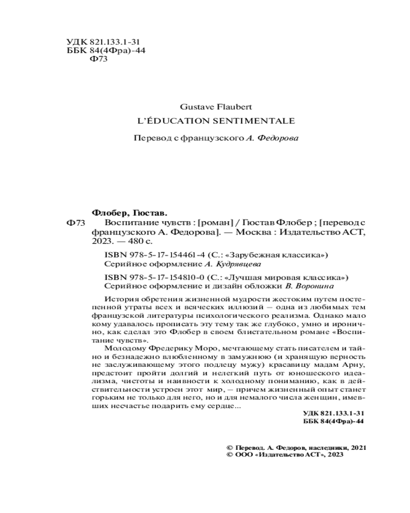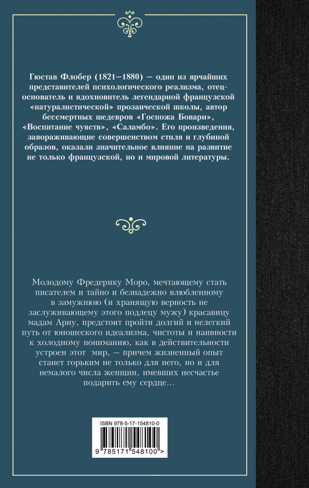 💳 Оплатить за товар можно при получении 🇰🇿 Есть бесплатная доставка по Казахстану от 1 дня 🎁 Копите бонусы с каждой покупки Серия: Лучшая мировая классика История обретения жизненной мудрости жестоким путем постепенной утраты всех и всяческих иллюзий — одна из любимых тем французской литературы психологического реализма. Однако мало кому удавалось прописать эту тему так же глубоко, умно и иронично, как сделал это Флобер в своем блистательном романе «Воспитание чувств». |