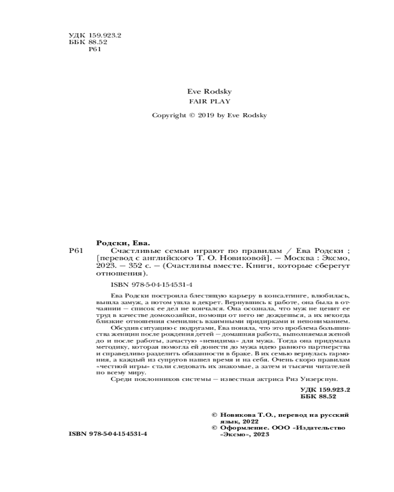 «Пары, ищущие способы достичь баланса в отношениях и гармонии в семье, точно выиграют от действенной методики Евы Родски». — Publishers Weekly
