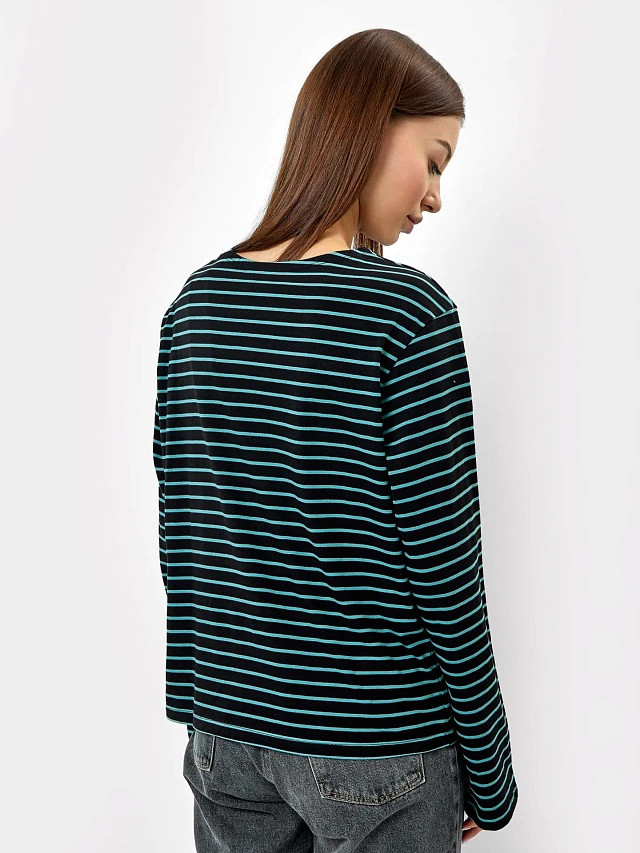 Лонгслив пришёл серо-бирюзового цвета ,как-будто застиранный и поношенный. Цвет не соответствует фото , в люди не наденешь , только если дома носить