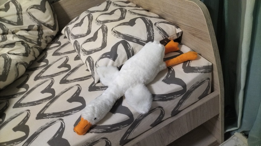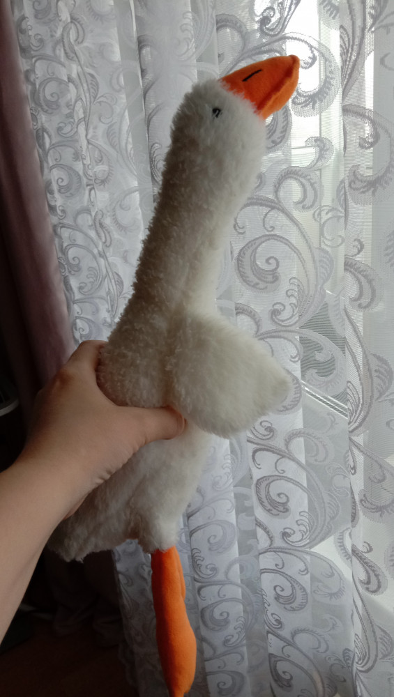 Небольшой гусик, длина от носа до лапок 50 см, очень мягкий.