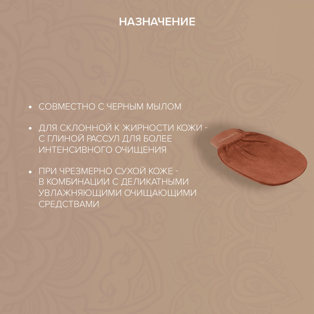 La sultane de saba Рукавичка «Кесса»В данный момент этот товар отсутствует в продаже. Возможно, у нас найдется аналогичный или похожий товар здесь. Рукавичка Кесса — универсальный инструмент для глубокого очищения кожи в Хаммаме! Изделие состоит из скрученных волокон вискозы, благодаря которым происходит тщательный пилинг кожи. При намокании поверхность рукавички становится грубее, за счет чего и происходит отшелушивание. Эксфолиация с помощью этого изделия инструмента не травматична и не вызывает никаких раздражений на коже при правильном использовании. Используется с Черным мылом, но для обладательниц кожи, склонной к жирности, использоваться с глиной Рассул для более интеснивного очищения, при чрезмерной сухой кожи рекомендуется использовать в комбинации с деликатными увлажняющими очищающими средствами. Роскошные средства бренда La Sultane de Saba Paris переносят нас в атмосферу мистического Востока, раскрывают древние секреты ухода восточных женщин и позволяют найти свой ритуал, поистине раскрывающий чувственность и красоту вашего тела. |