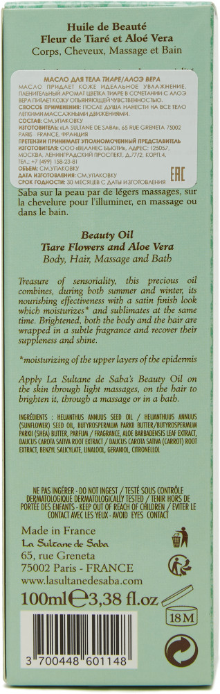 La sultane de saba Масло для тела «Цветок тиаре и алое вера»В данный момент этот товар отсутствует в продаже. Возможно, у нас найдется аналогичный или похожий товар здесь. Нежнейшее масло для тела и волос La Sultane de Saba легкой, нежирной текстуры легко впитывается не оставляя жирных следов, обеспечивает полноценный уход за вашей кожей. Благодаря ценным природным эссенциям масло является идеальным продуктом для питания и смягчения кожи. Богатое микроэлементами и витаминами, оно насыщает кожу всем необходимым для здоровья и комфорта, делая её бархатистой и сияющей. Жидкое золото с цветом солнца. Чувственное и деликатное Масло придает идеальное увлажнение. Пленительный и экзотический аромат цветка Тиаре в сочетании с Алоэ вера питает кожу опьяняющей чувственностью. |