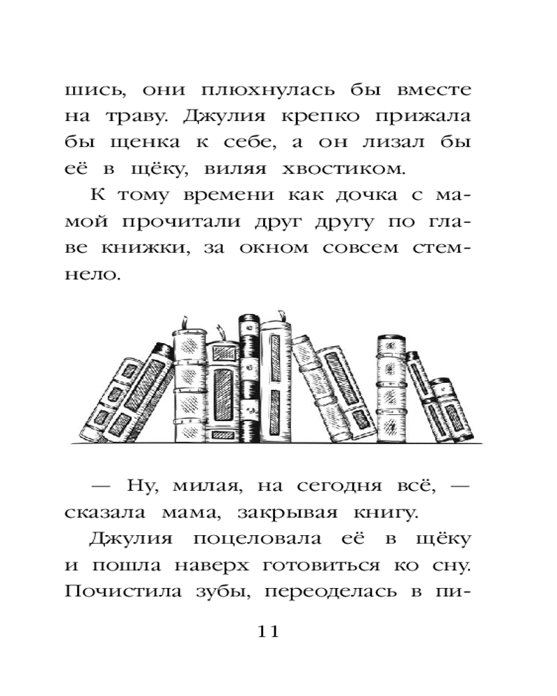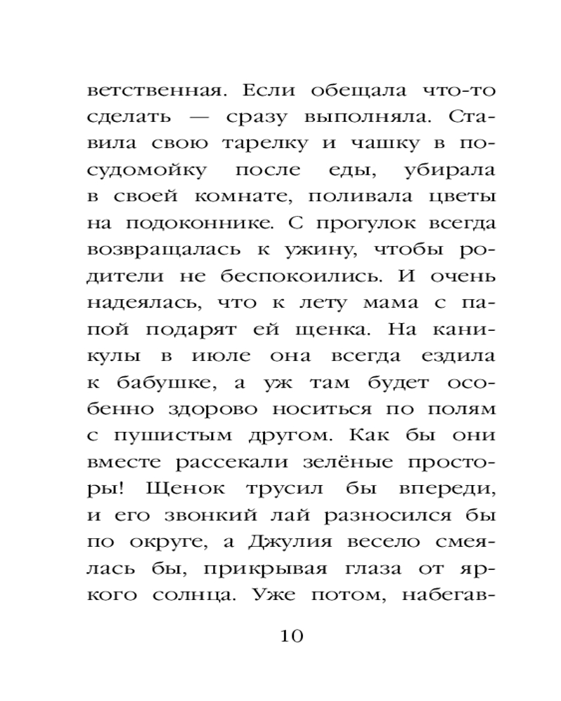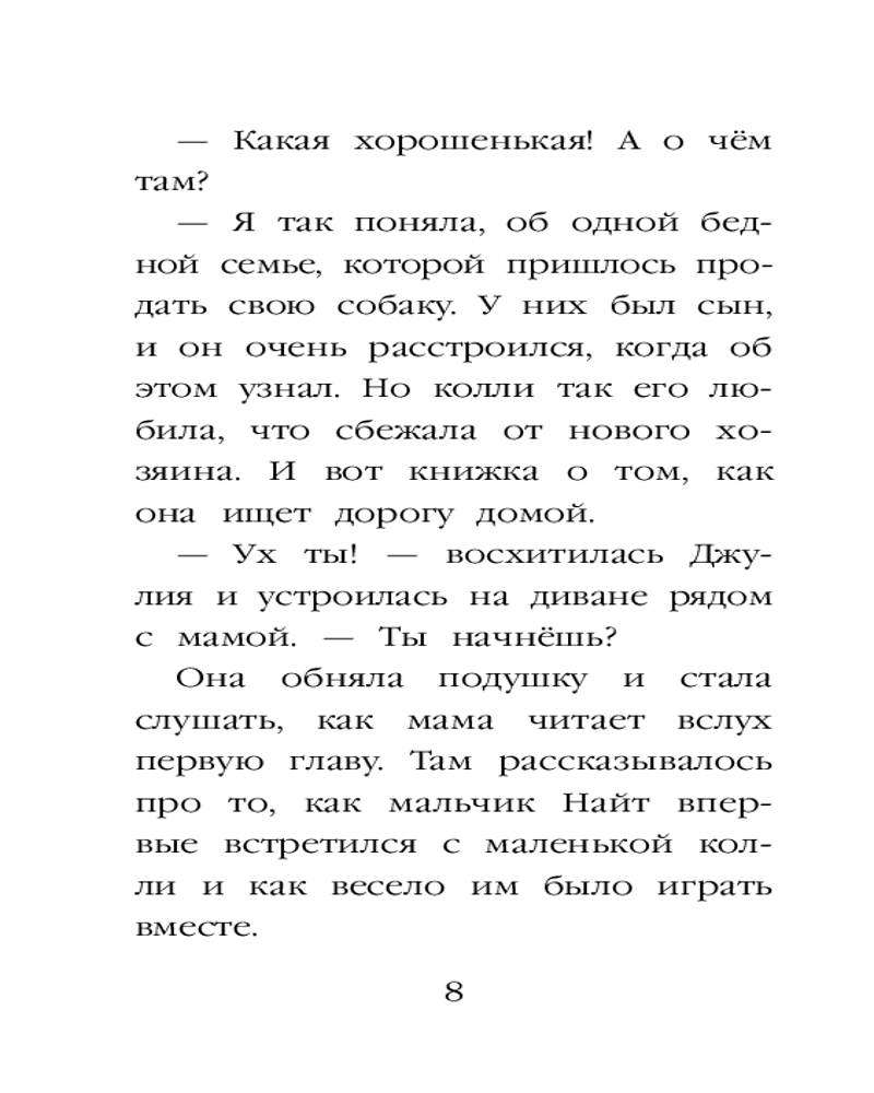 Добрая история, про жизнь девочки Джулии. Хороший шрифт, легко читается. Сын сам выбрал.