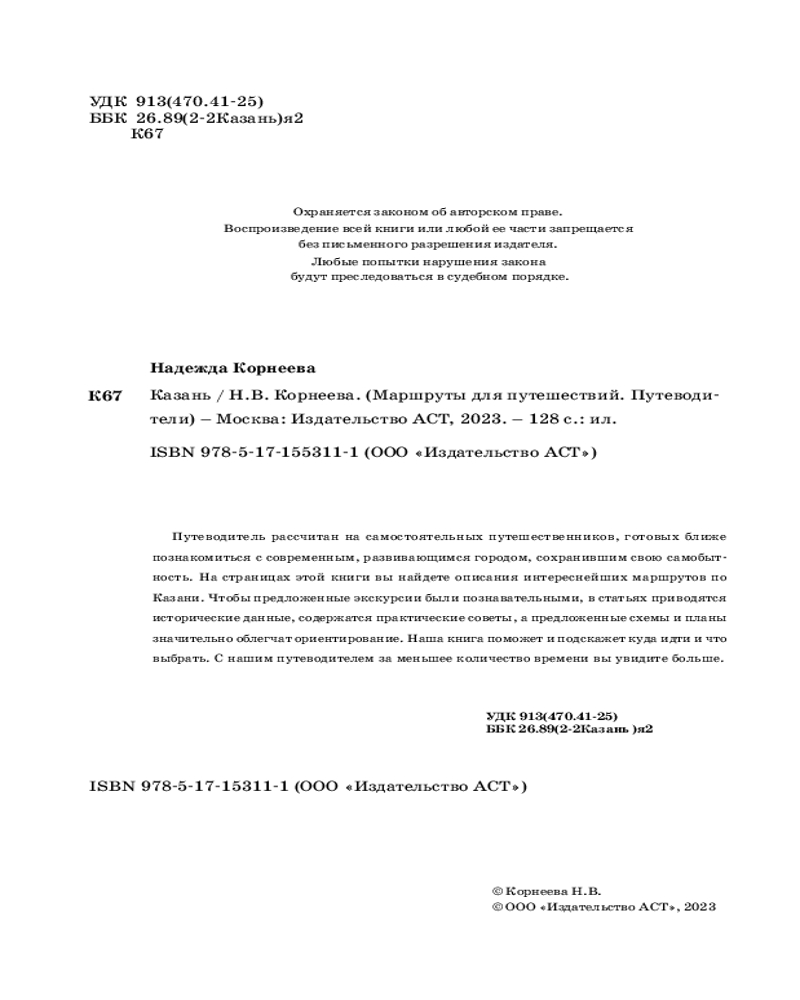 💳 Оплатить за товар можно при получении 🇰🇿 Есть бесплатная доставка по Казахстану от 1 дня 🎁 Копите бонусы с каждой покупки Серия: Маршруты для путешествий. Путеводители На страницах этой книги вы найдете описания интереснейших маршрутов по Казани. Путеводитель рассчитан на самостоятельных путешественников, готовых ближе познакомиться с современным, развивающимся городом, сохранившим свою самобытность. Туристическая концепция города — «1000 и 1 удовольствие», полностью оправдывается — в Казани есть развлечения на любой вкус. Наша книга поможет и подскажет куда идти и что выбрать. |