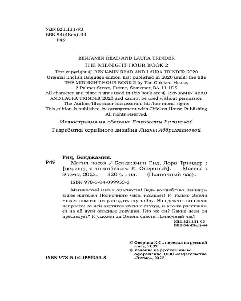 💳 Оплатить за товар можно при получении 🇰🇿 Есть бесплатная доставка по Казахстану от 1 дня 🎁 Копите бонусы с каждой покупки Серия: Детск. Полночный час Из Полночного часа пропадает магия! А это значит, что жители волшебного мира в смертельной опасности! Эмили не может бросить их в беде и должна разгадать тайну исчезающей магии! Но сначала ей придётся пройти немало испытаний: сбежать от преследующих её жутких статуй и оживающих картин и обойти все ловушки, которые кто-то расставляет на её пути. Успеет ли девочка спасти Полночный час и выяснить, кто стоит за этими странными событиями? |