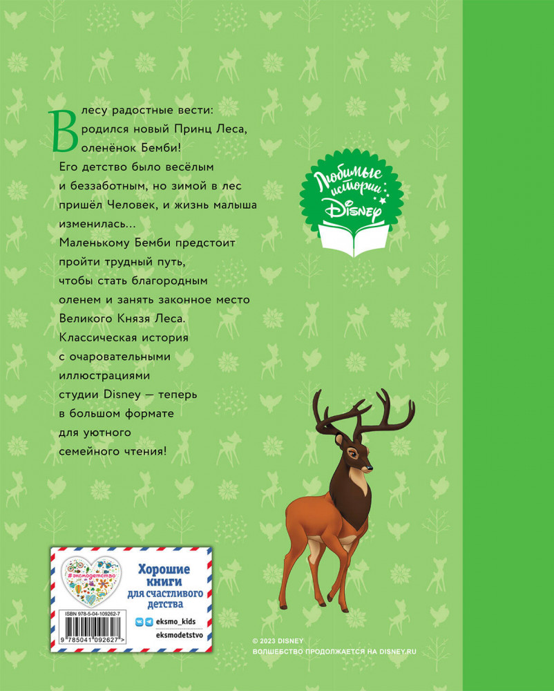 Бемби. Сказка о храбром оленёнкеиллюстрации содержание подарочная пригодность тонкие страницы В данный момент этот товар отсутствует в продаже. Возможно, у нас найдется аналогичный или похожий товар здесь. Серия: Disney. Любимые истории В этой книге вас ждёт встреча с очаровательным оленёнком Бемби. Как и дети, он полон интереса к окружающему миру и с любопытством исследует его. Хотите узнать, какие приключения и испытания ждут его? Тогда скорейте открывайте первую страницу! |