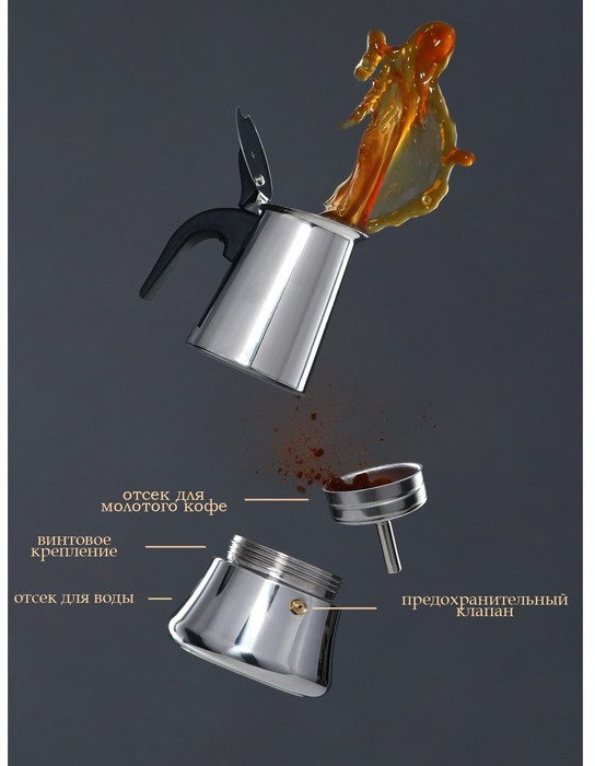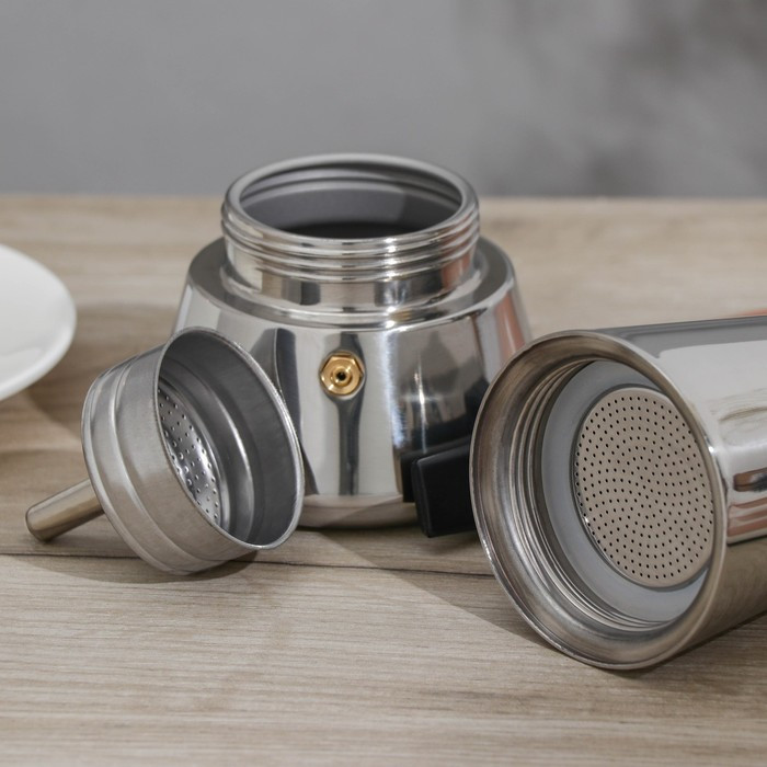Потрясающая кофеварка на 100 мл, самое оно для эспрессо! Заваривается достаточно быстро. Выглядит солидно, удобная ручка, жтдкость при заваривании не разбрызгивается, силиконовая прокладка ровная и держит давление👍🏼 Качество металла достойное, дно толстое, что позволяет медленно варить кофе, без опасений, что напиток «подгорит».