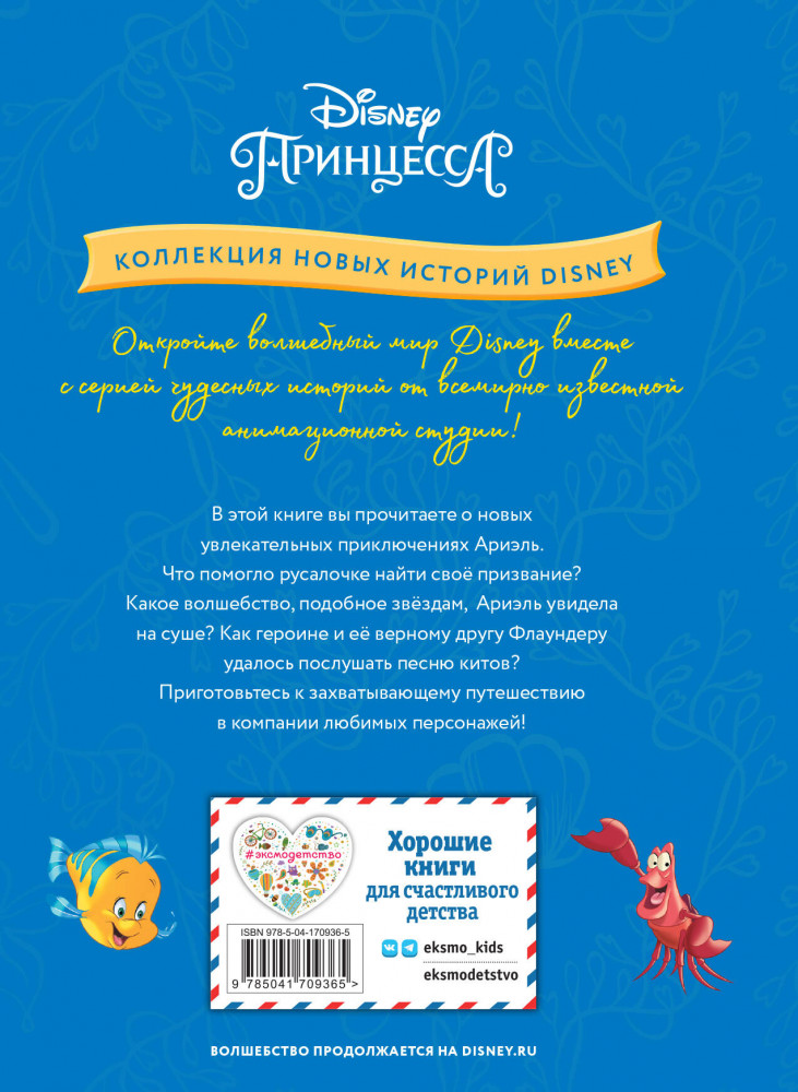 Какая драгоценность стала первым экспонатом в музее Русалочки, чего боится Флаундер, как Ариэль провела чудесный вечер на суше — всё это, а также многое другое вы узнаете благодаря сборнику новых историй Disney.