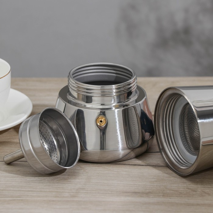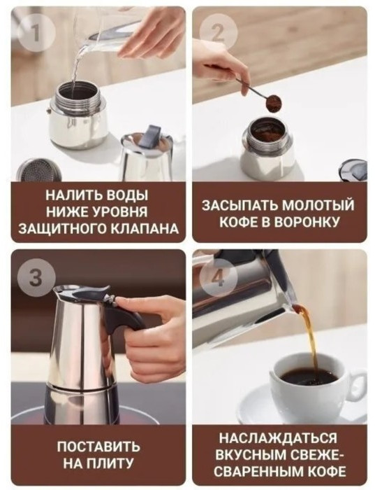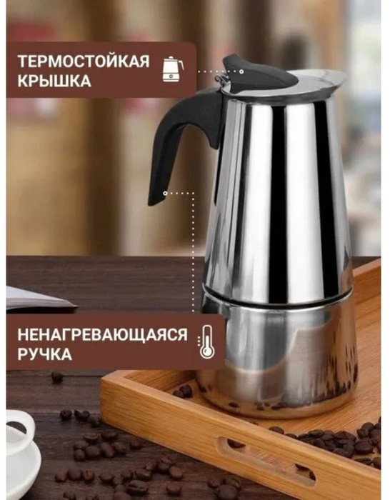 Потрясающая кофеварка на 100 мл, самое оно для эспрессо! Заваривается достаточно быстро. Выглядит солидно, удобная ручка, жтдкость при заваривании не разбрызгивается, силиконовая прокладка ровная и держит давление👍🏼 Качество металла достойное, дно толстое, что позволяет медленно варить кофе, без опасений, что напиток «подгорит».