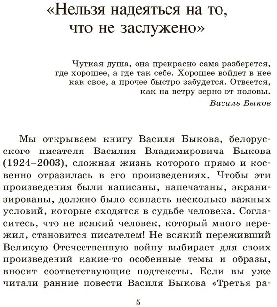 Серия: Классная библиотека Василь Владимирович Быков (1924–2003) — советский и белорусский писатель, участник Великой Отечественной войны. Не удивительно, что военная тема стала главной в его творчестве. Произведения автора совсем не похожи на хронику военных будней, побед и поражений. Его волнуют вечные темы бытия, которые важны и для мира безвоенного — ответственности, честности, доверия, порядочности, милосердия. |