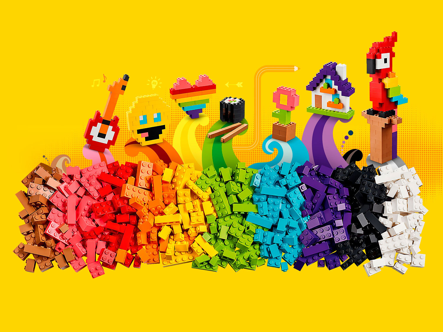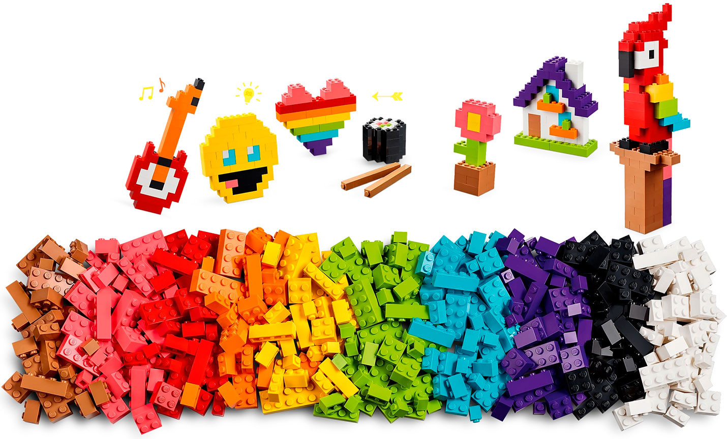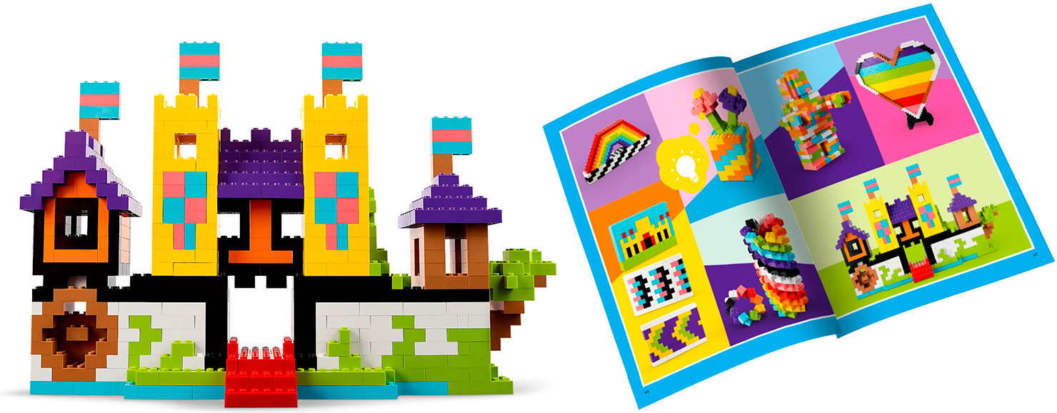 • куча разноцветных кубиков — набор LEGO Classic Lots of Bricks полон идей, вдохновения и, конечно же, кубиков для начинающих дизайнеров;
