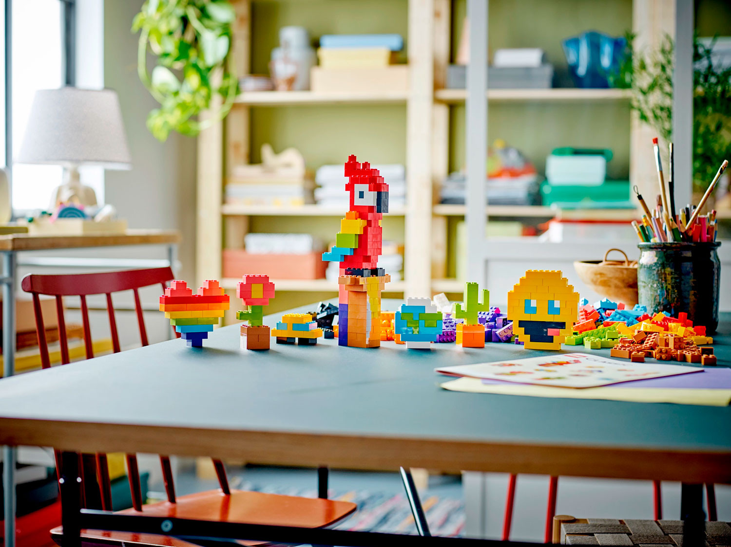 • бесконечное творчество — дети могут не только строить все, что могут вообразить, но и использовать печатные инструкции для сборки автомобиля, глобуса, цветка, гитары, дома, улыбающегося смайлика, попугая и многих других забавных моделей;