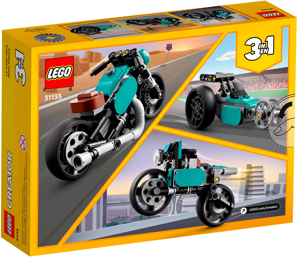 LEGO (ЛЕГО) Конструктор Creator 31135 Винтажный мотоцикл. Vintage Motorcycleкачество конструктор норм В данный момент этот товар отсутствует в продаже. Возможно, у нас найдется аналогичный или похожий товар здесь. Серия: LEGO Creator Дети и любители крутых автомобилей в возрасте от 8 лет и старше могут наслаждаться бесчисленными часами гонок с этим великолепным игровым набором LEGO Creator 3 в 1 «Винтажный мотоцикл». Классический игрушечный мотоцикл оснащен рулем, подвижным передним колесом, фарами, большой выхлопной трубой и подставкой для демонстрации. |