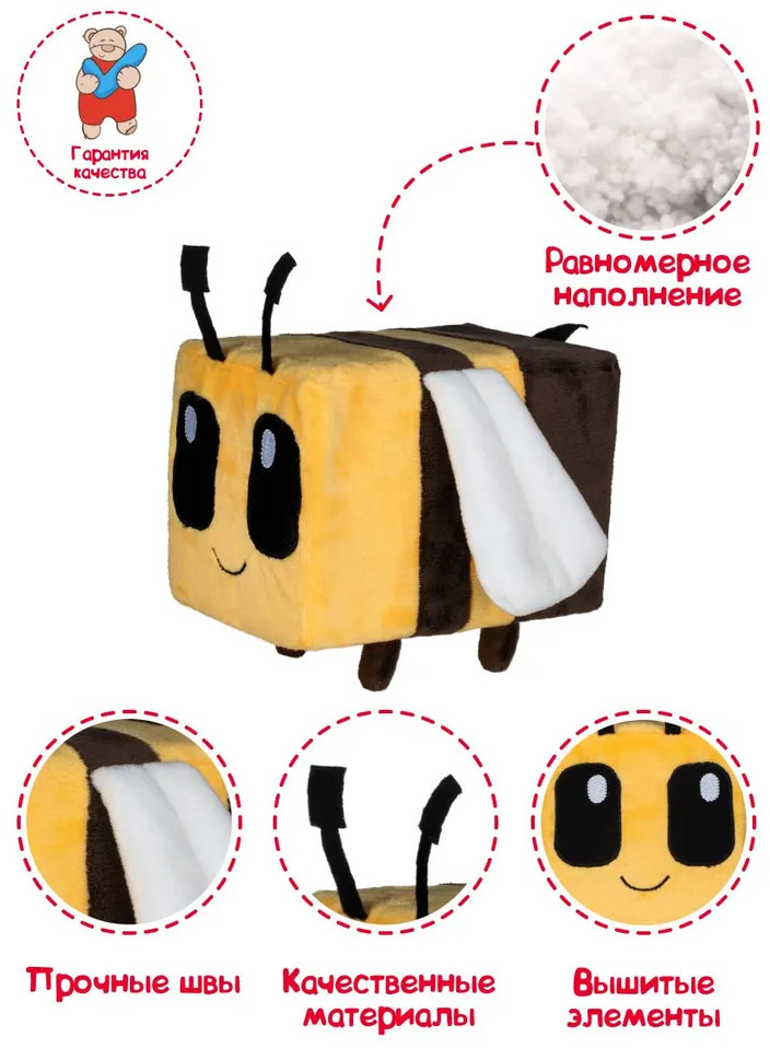 💳 Оплатить за товар можно при получении 🇰🇿 Есть бесплатная доставка по Казахстану от 1 дня 🎁 Копите бонусы с каждой покупки Мягкая игрушка от белорусской компании Fancy Пчела Пиксель — это персонаж цифровой вселенной Майнкрафт. Она выполнена в оригинальном пиксельном стиле, из качественных и комфортных материалов, ее приятно держать в руках, обнимать, она прочна и экологически безопасна, можно не бояться сломать или повредить изделие. Прекрасная детализация Пчелки позволяет перенестись в мир Minecraft, т.к. она в точности копирует героя игры, летающего нейтрального моба, живущего в ульях и пчелиных гнёздах. Она поможет отвлечь игрока от компьютера, ведь юные поклонники виртуальных приключений могут перенести компьютерные баталии в настоящий мир. |