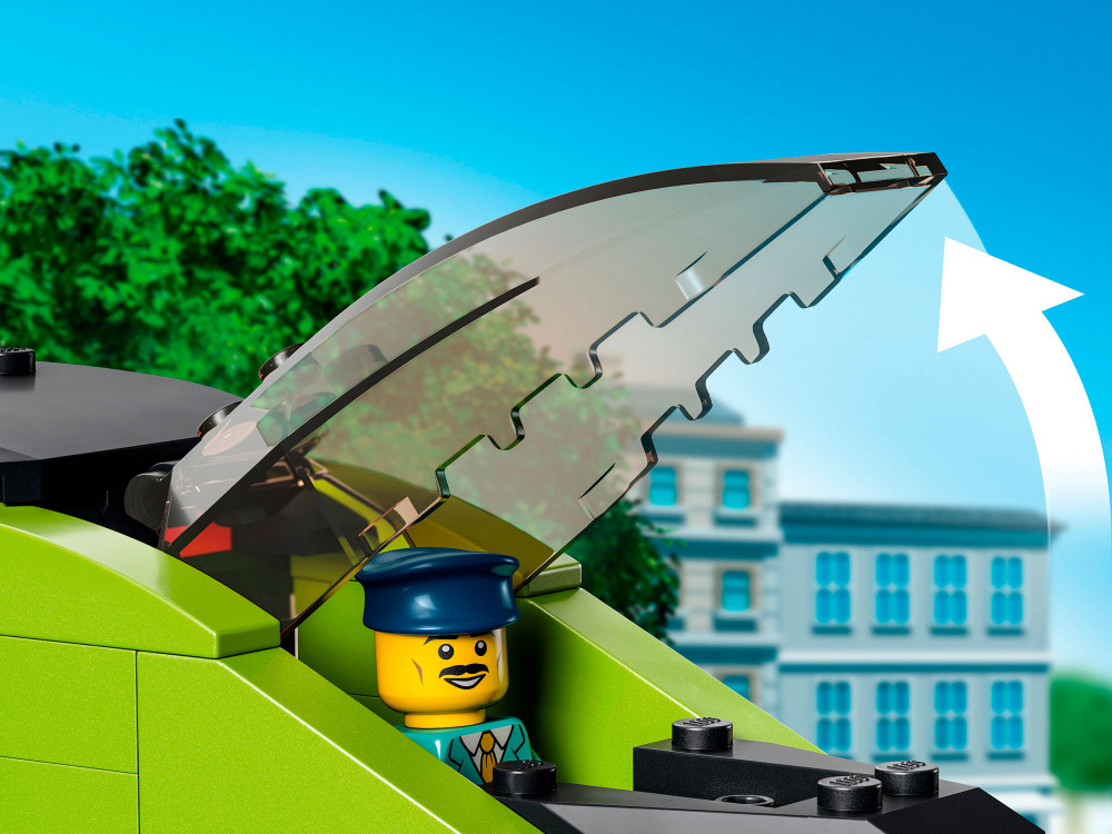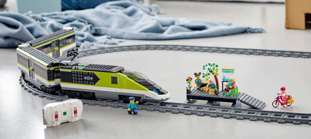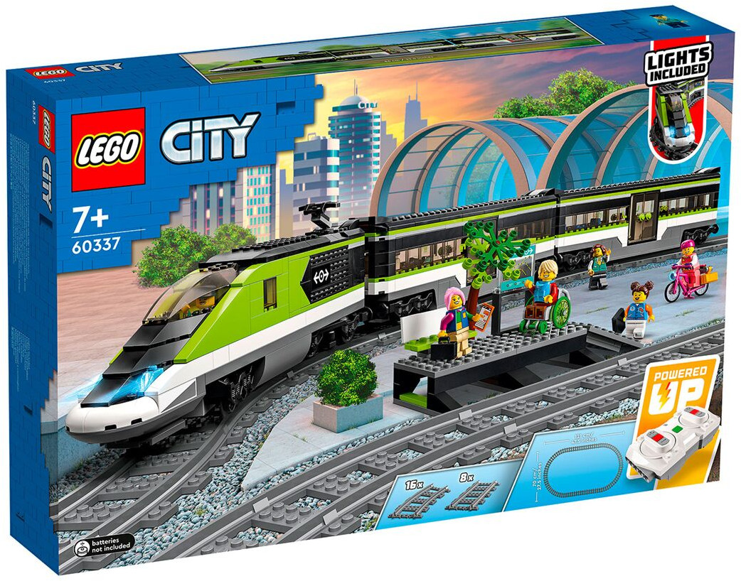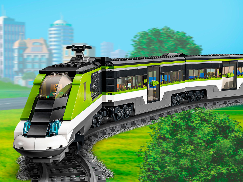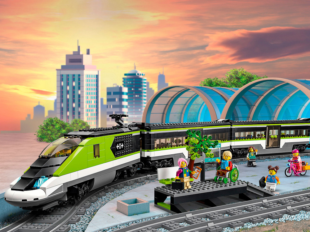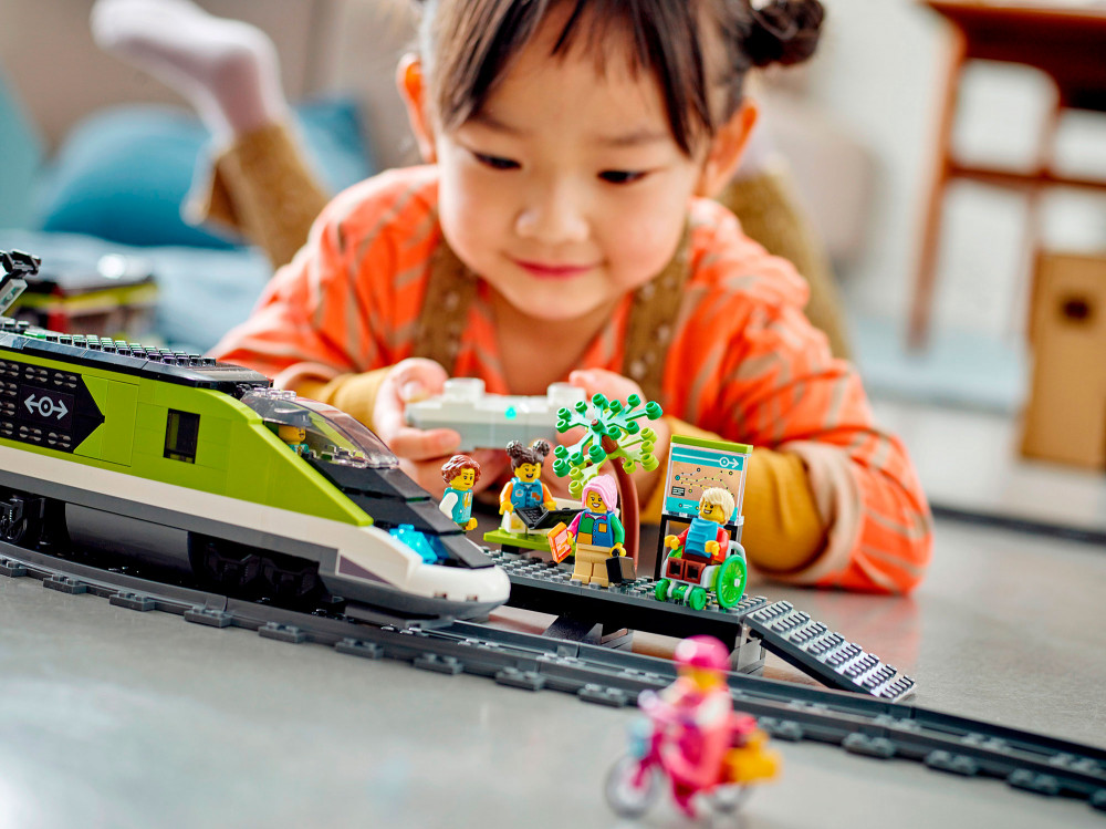 Игровой набор «Пассажирский поезд-экспресс» LEGO City отличается множеством функций и возможностей для бесконечных часов игры в железную дорогу. В коробке все необходимое для сборки скоростного локомотива с работающими фарами с переменной яркостью, вагона-ресторана, пассажирского вагона и платформы станции, а также 24 элемента рельсов и шесть минифигурок. Игрушечным поездом и яркостью фар можно управлять с помощью входящего в набор пульта дистанционного управления или со смартфона через приложение LEGO Powered Up.