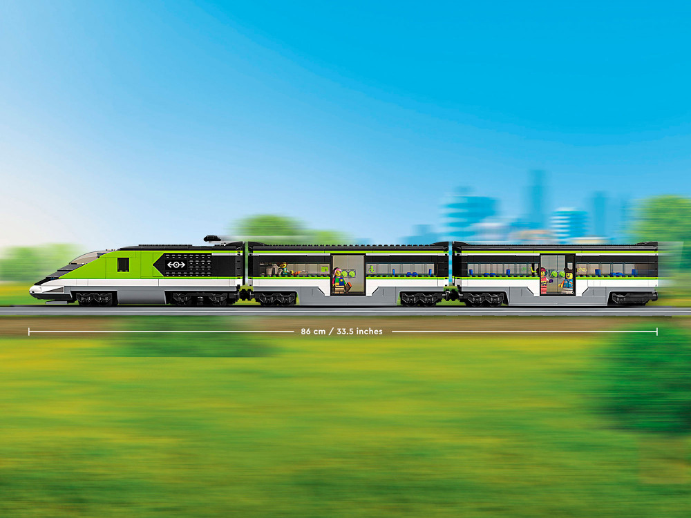В собранном виде размеры пассажирского поезда-экспресса составляют более 10 см в высоту, 86 см в длину и 5 см в ширину. В набор «Пассажирский поезд-экспресс» входит игрушечный ноутбук, телефон, велосипед, инвалидная коляска, портфель, рюкзак и хот-дог. В наборе есть 16 изогнутых и 8 прямых элементов рельсов. Игровой набор включает в себя простые и понятные инструкции по сборке для каждой модели. Подарок на любой случай ребенку в возрасте от 7 лет, который любит поезда. Все элементы LEGO соответствуют строжайшим отраслевым стандартам, поэтому они совершенно безопасны, совместимы друг с другом, и их интересно собирать.