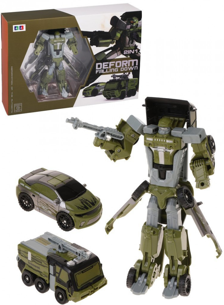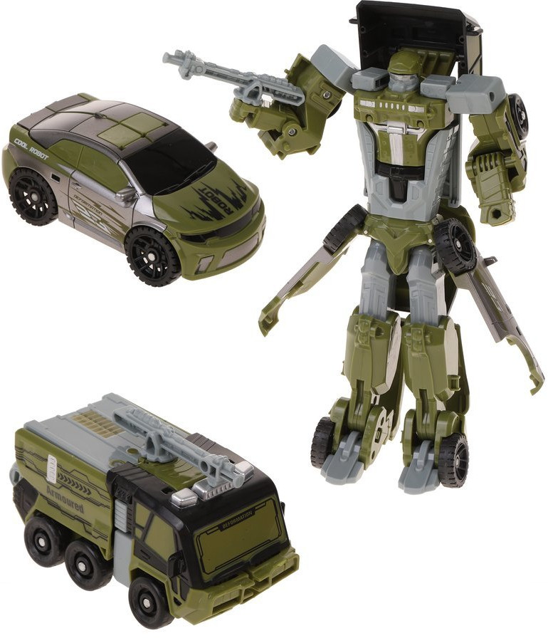 Наша игрушка Робот-трансформерВ данный момент этот товар отсутствует в продаже. Возможно, у нас найдется аналогичный или похожий товар здесь. Трансформеры — это современные и очень притягательные для мальчишек игрушки 2 в 1. Всего лишь несколько несложных движений рук, и мощный робот превратится в военную машинку. Играя с трансформерами, дети развивают мелкую моторику рук, координацию движений, память и логическое мышление. В наборе прилагается робот-трансформер, 2 детали, 1 оружие, 2 карточки. |