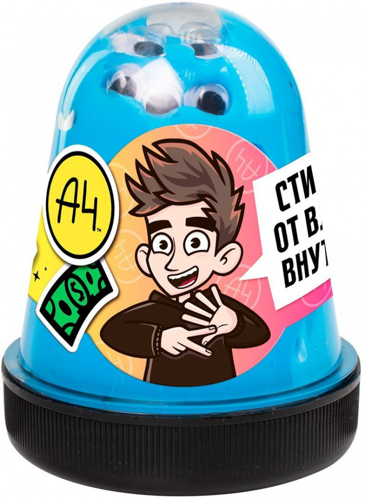 Слаймы с декором внутри от Влада А4! 130 гр. тянущегося удовольствия! В наборе коллекционный стикер от Влада А4 — собери всю коллекцию. Slime легко тянется, мнется, хрустит и кликает. Из лизуна выдуваются большие пузыри через трубочку, которая идет в комплекте. Slime держит жидкость как шарик, если подставить под струю воды, завернув уголки.