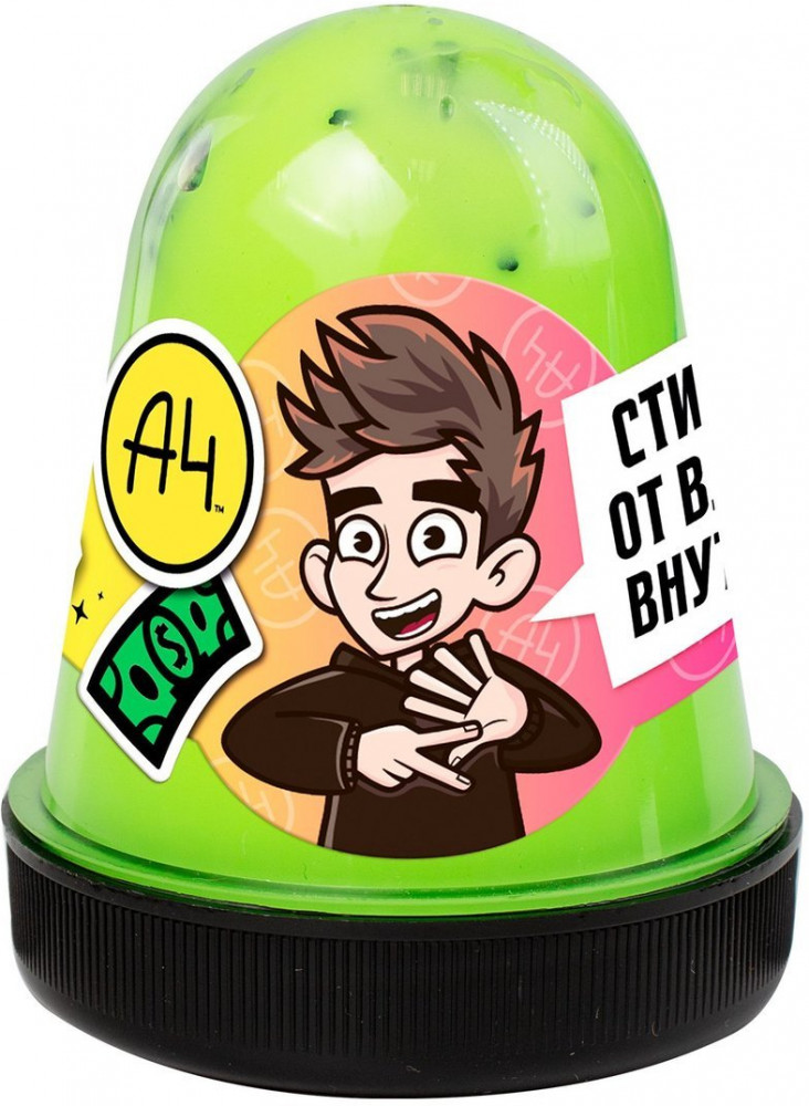 Слаймы с декором внутри от Влада А4! 130 гр. тянущегося удовольствия! В наборе коллекционный стикер от Влада А4 — собери всю коллекцию. Slime легко тянется, мнется, хрустит и кликает. Из лизуна выдуваются большие пузыри через трубочку, которая идет в комплекте. Slime держит жидкость как шарик, если подставить под струю воды, завернув уголки.